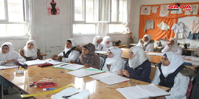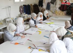 وتعد الثانوية المهنية النسوية في مدينة الكسوة بريف دمشق التي لم تغلق أبوابها خلال الازمة نموذجاً متميزاً في تخريج أيد عاملة مدربة ومحترفة من خلال اقسامها وورشاتها المنتجة التي تشمل الأعمال اليدوية والكروشيه وشغل الصوف والخياطة والرسم على الجدران إضافة إلى الحاسوب.