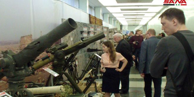 جاء ذلك خلال معرض للغنائم العسكرية التي تم انتزاعها من التنظيمات الإرهابية في مختلف مناطق سورية وتم افتتاحه في مبنى مجلس الدوما الروسي برعاية وزارة الدفاع الروسية ولجنة الدفاع في المجلس.
