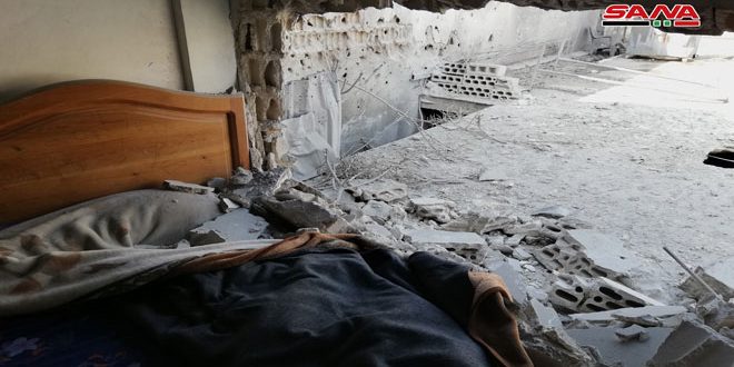 أفاد مراسل سانا في اللاذقية بسقوط قذيفة أطلقتها المجموعات الإرهابية المنتشرة في الريف الشمالي على منطقة قنينص وتسببت بإصابة مدني وأضرار مادية.