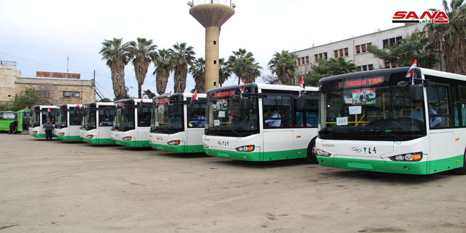 وكانت الشركة العامة للنقل الداخلي في حلب استلمت خلال كانون الثاني الماضي عشرة باصات حديثة تم تشغيلها ووضعها بالخدمة.
