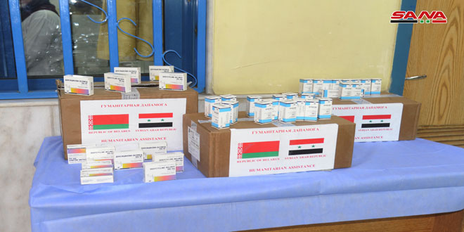 وكانت سورية تسلمت أمس دفعة جديدة من المساعدات مقدمة من جمهورية بيلاروس إلى السوريين تضم تجهيزات ولوازم مدرسية وطبية وأغذية وألبسة للأطفال وشاحنتي حمولة وسيارة نقل ومولدات كهربائية.