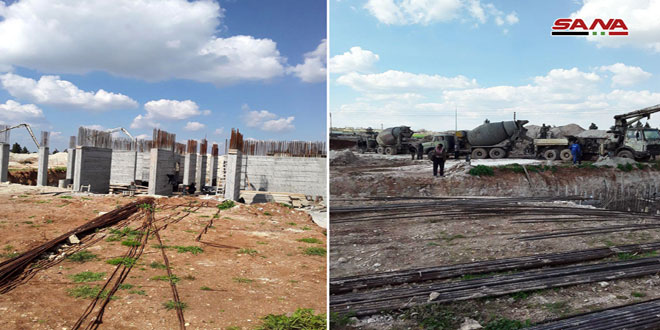 من جهته بين علي السلوم مهندس تنفيذ في شركة البناء والتعمير أن المواد الأولية المستخدمة في البناء من أجود الأنواع وهي مطابقة للمواصفات السورية والعمال يعملون بكفاءة عالية وإحساس كبير بالمسؤءولية الملقاة على عاتقهم.