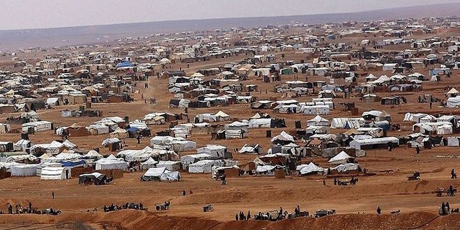 ويعيش في مخيم الركبان آلاف المهجرين السوريين بفعل الإرهاب أوضاعا إنسانية صعبة ونقصا بالرعاية الصحية والغذاء والمياه في ظل احتجازهم من قبل قوات الاحتلال الأمريكي وميليشياته الإرهابية الموجودة بشكل غير شرعي في منطقة التنف التي تمنعهم من مغادرة المخيم عبر الممرات الإنسانية التي تم افتتاحها من قبل الجانبين السوري والروسي في الـ 19 من شباط الماضي في بلدتي جليب وجبل الغراب على أطراف المنطقة.