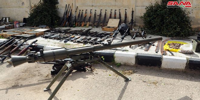 استكمالا لعمليات تمشيط القرى والبلدات المحررة من الإرهاب عثرت الجهات المختصة على أسلحة وذخائر بعضها إسرائيلي الصنع من مخلفات الإرهابيين في ريف درعا الشمالي.