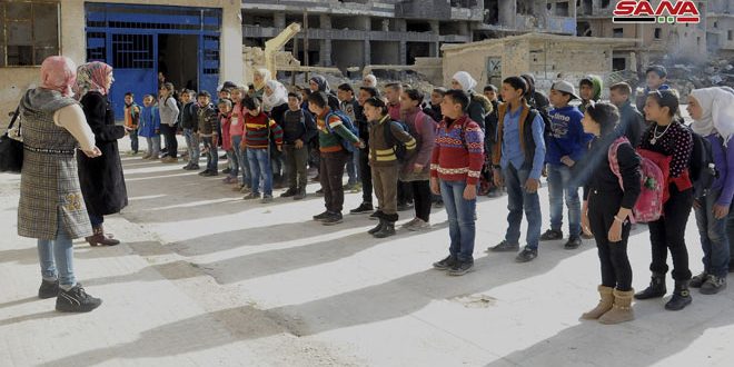 واليوم بعد تحرير الجيش العربي السوري معظم التراب السوري من رجس الإرهاب باشرت الدولة من خلال وزارة التربية بوضع الخطط والبرامج الهادفة إلى إعادة تأهيل البنى التحتية للمدارس المتضررة وإعادة المتسربين بعدما منعتهم المجموعات الإرهابية من الذهاب للمدارس بالتوازي مع ايلاء الدعم النفسي والإرشادي للطلاب بكل فئاتهم أهمية كبيرة من أجل بناء شخصية سليمة نفسيا وبدنيا وغرس القيم الثقافية والأخلاقية لضمان نشأة صحية للأجيال.