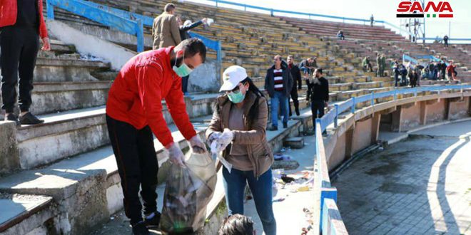 وتوج اللقاء بحملة نظافة تطوعية بعنوان “بيئتنا مسؤوليتنا لصحتنا وسلامتنا” في ملعب خالد بن الوليد شارك فيها عدد كبير من العاملين في مديرية البيئة والاتحاد الرياضي وجمهور المشجعين في الملعب الأمر الذي أكد أن المواطنين مندفعون دائما نحو التطوع وينتظرون أي مبادرة للمشاركة فيها.