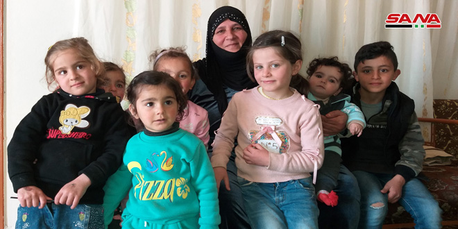 أم ابراهيم التي بدت منشرحة الصدر وهي تستقبلنا مرحبة بابتسامة عريضة دعتنا للجلوس في صدر المنزل ولم تستطع كبح دموعها في ردها على سؤال مراسلة سانا عن يوم التئام شمل العائلة قبل أربعة اشهر: “بناتي من سبع سنوات لم أرهن” تشهق باكية “أختي توفيت بعد قدومي بيوم واحد”.. تمسح أم ابراهيم دموعها.. تتماسك مجدداً مختصرة معاناتها بالمثل الشعبي “من ليس بالبلد لا له ولا للولد”.. تضم أصابع يدها اليمنى قائلة: “قليل من التراب أحسن من العالم كله.. خبز وزيتون بالبلد أحسن من الولائم خارجه ما يقال بأن السفر أفضل كله كلام فارغ”.