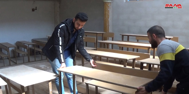 عمار الزعبي طالب في المركز يبدي حماساً للمشاركة بأعمال الترميم وإن كانت بسيطة ويقول:”يجب أن نكون يداً واحدة نشارك العمال عملهم ليعود المعهد جميلاً” لافتاً إلى أنه رغم أعمال التأهيل الجارية إلا أن وضع التدريس بالمعهد طبيعي مع وجود كامل الكادر التدريسي.