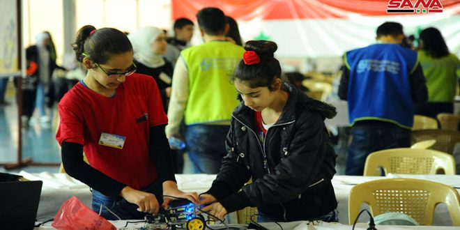 الطالب علي محسن جنيدي من طرطوس قال: إنه شارك في مسابقة الروبوت ويطمح إلى الوصول إلى مراتب متقدمة في هذا المجال.