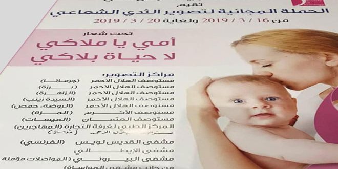 أطلقت الجمعية السورية لأمراض الثدي حملة تصوير شعاعي للثدي (ماموغرام) مجانا في عدة مراكز صحية ومشافي بدمشق وريفها وحمص وتستمر لغاية 20 آذار الجاري بمناسبة عيد الأم.