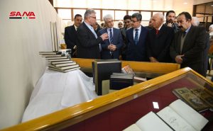 الاحتفالية التي أقامتها الهيئة العامة السورية للكتاب بالتعاون مع نادي شام الثقافي وجامعة الجزيرة الخاصة ضمت معرضا لأمهات الكتب باللغة العربية ومخطوطات نادرة مع عرض بيبلوغرافيا في علوم اللغة العربية احتضنته قاعة المعارض في المكتبة.