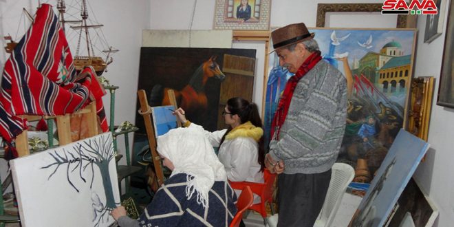 ويضيف العساف: “افتتحت أبواب مرسمي أمام كل من يرغب في نهل المعرفة والبداية كانت باستقطاب الأطفال ممن لديهم رغبة في التعلم بهدف التخفيف عنهم من مفرزات الحرب وتكريس قيم المحبة والخير والفن في نفوسهم وبعدها توسعت الدائرة لاستقبال اليافعين والشباب ليتجاوز عدد الرواد 85 تم تقسيمهم على مدار الأسبوع لكي يستوعبهم المرسم”.