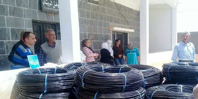 وزعت مديرية الزراعة بالسويداء اليوم شبكات ري على 1500 امرأة ريفية ضمن 28 قرية وذلك بموجب منحة المشروع الوطني للزراعات الأسرية للحدائق المنزلية.