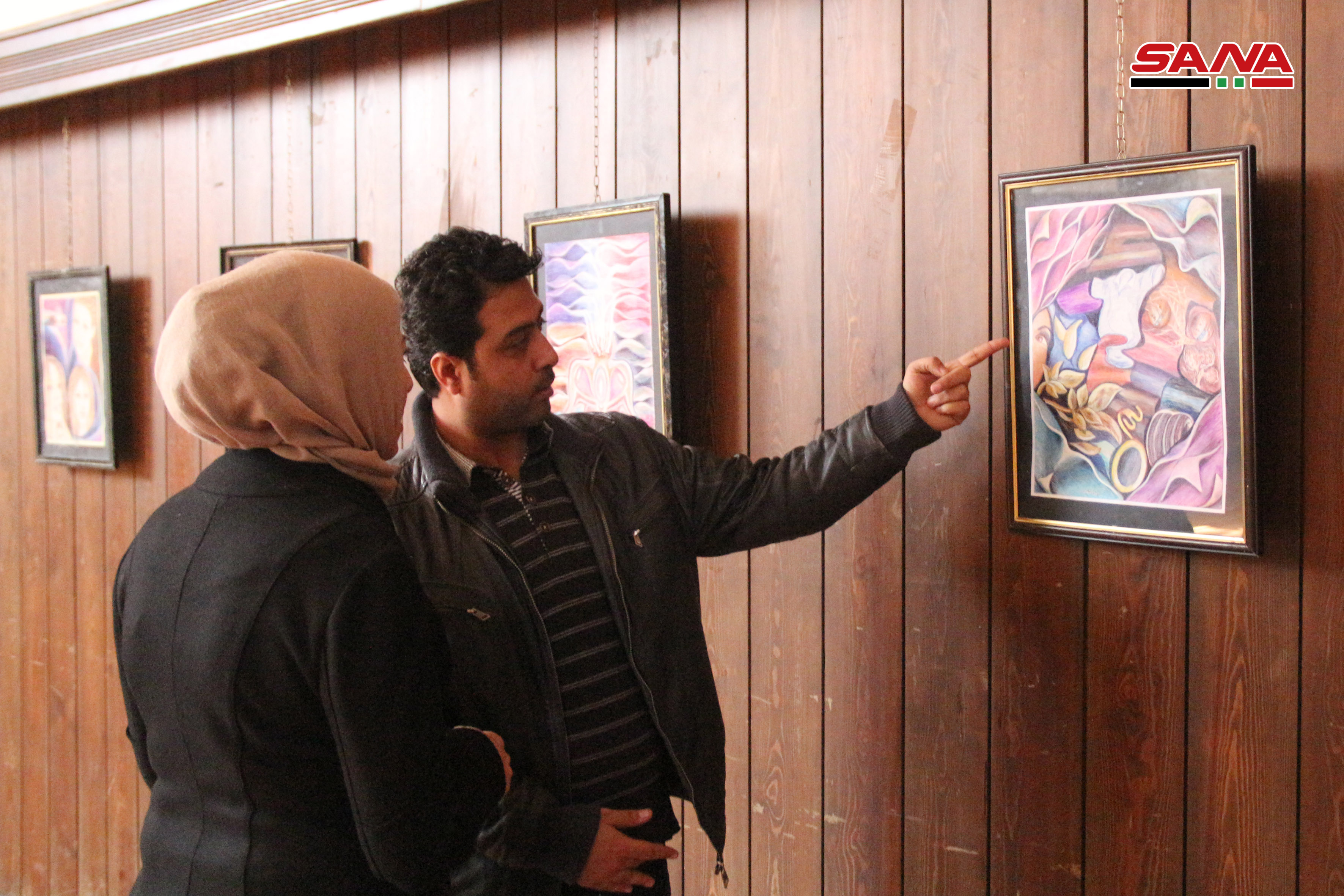 العلم والتربية يستحوذان على لوحات معرض الفنانة ناديا اسعيد في حلب