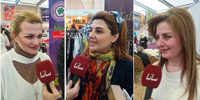 الأم أماني ياسرجي أشارت بدورها الى أنها تعمل منذ مدة بشراء الألبسة من ورشات الخياطة وتسويقها في المعارض والفعاليات التجارية لتتمكن من تربية ولديها الاثنين وإكمال دراستهما حيث تتواصل عبر الانترنت مع المتسوقين وإرسال المنتجات لباقي المحافظات ونصحت جميع الأمهات بالبحث المستمر عن سبل لتحسين ظروفهن المعيشية معبرة عن سعادتها بتجربتها الأولى في المشاركة بالمعارض الخاصة.