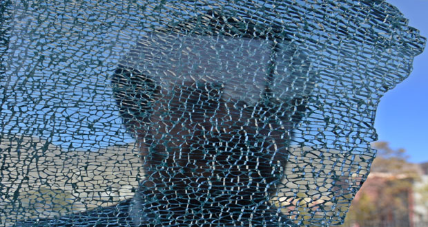 2014-11-10رجل ينظر من خلال الزجاج المحطم لحافلة في مكان انفجار قنبلة زرعت على طرف الطريق في أحد شوارع ابول كابول 2014-11-10admin