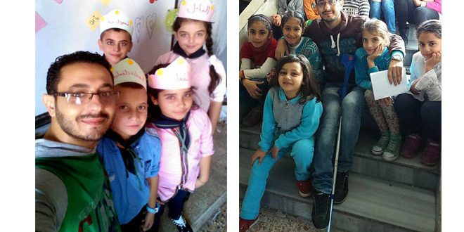 طلاب الصفين الخامس والسادس في مدرسة الشهيد علي عبد السلام العلي بمحافظة طرطوس الذين يتلقون علومهم في مجال اللغة العربية على يد الأستاذ مرهف أبدوا تخوفاً في البداية من عدم قدرته على الوقوف الطويل والمشي كونه يسير على عكاز حسب قوله لكنه أثبت لهم بالعزيمة والإصرار أنه قادر على إيصال رسالته في المجتمع رسالة المحبة والسلام والدمج بين أبناء المجتمع المحلي والوافد كون المحافظة استقبلت الكثير من المهجرين والنازحين الذين تقاسموا مع طلابها مقاعد الدراسة ورحلات المدارس وغيرها الكثير من الأنشطة ومنها المسرح والغناء والرقص والعزف أيضاً.
