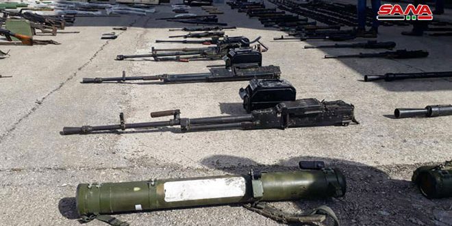 خلال متابعة تمشيطها المناطق التي تم تحريرها من الإرهاب عثرت الجهات المختصة على أسلحة وذخائر من مخلفات التنظيمات الإرهابية بريف حمص الشمالي.