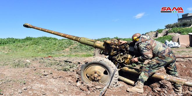 ردت وحدات من الجيش العربي السوري على تكرار المجموعات الإرهابية خرقها اتفاق منطقة خفض التصعيد في إدلب ومحاولتها التسلل من مناطق انتشارها بريفي ادلب الجنوبي وحماة الشمالي والاعتداء على النقاط العسكرية والمناطق الآمنة.