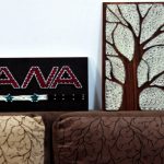 تحف فنية صممتها الشعراني بأدوات بسيطة أساسها الخشب والمسامير وخيطان الحرير أو البولستر محاولة رسم تصاميمها في فكرها أو الورق قبل تجسيدها على الخشب حسب المناسبة وفكرة التصميم.