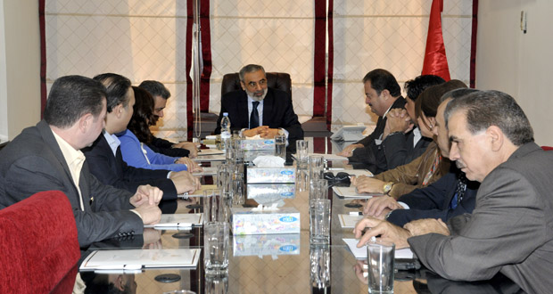 واستمع الوزير خلال لقائه نقيب الفنانين زهير رمضان وأعضاء مجلس النقابة الجدد المنتخبين في الدورة الانتخابية السابعة إلى شرح عن واقع الدراما والعمل في النقابة واحتياجات الفنانين والكتاب وكل مكونات قطاع الدراما والمعوقات التي قد تعترض العمل لافتا إلى أن الوزارة لن توفر سبيلا للمساهمة في نهضة الدراما السورية وتألقها.