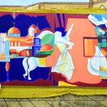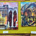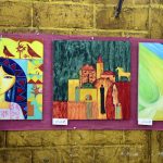 وتضمنت لوحات محمود عبد الله وأيمن مصطفى ومنى زيدان لمحات من فلسطين بتاريخها وتراثها والتأكيد على التصميم الكبير من أجل تحريرها ومقاومة المحتل.