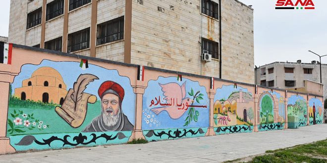 بمبادرة تطوعية لفرع طلائع البعث واتحاد شبيبة الثورة ومديرية تربية إدلب تم إنجاز لوحة جدارية فنية على السور الغربي للمبنى المؤقت لمديرية تربية إدلب في حماة تجسد أبرز الرموز والمعالم الأثرية والسياحية لمحافظة إدلب مع إضافة لمسة فنية إبداعية صاغتها أنامل المشاركين في هذا العمل الفني.