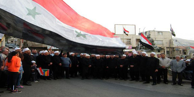 وفي محافظة الحسكة أكد طلبة الكليات الجامعية أن انشغال الشعب السوري في مقارعة الإرهاب وتطهير البلاد من رجسه لن يثنيه بأي شكل من الأشكال عن المضي قدما في مسيرة المقاومة لتطهير الجولان المحتل من رجس الصهاينة.