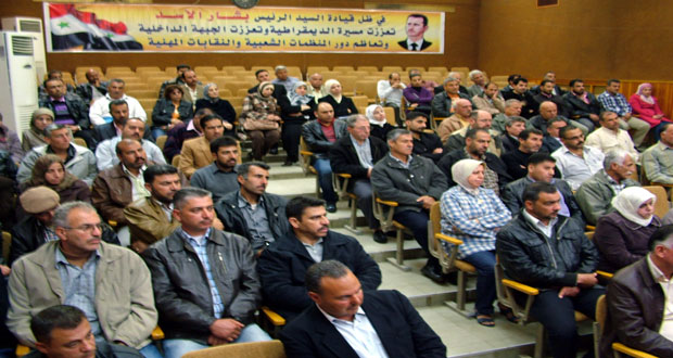 ودعا عضو قيادة فرع حماة لحزب البعث عبد الحليم الخليل إلى العمل الميداني وملامسة قضايا العمال وحل مشكلاتهم والوقوف مع العمال صفا واحدا للمساهمة في إعادة الإعمار وبناء الاقتصاد السوري.