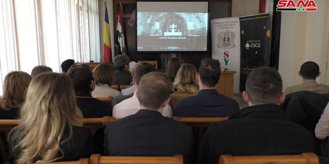 وبدأت الجلسة بعرض فيلم عن سورية وحضارتها والتطور الذي شهدته منذ العام 1970 ولغاية 2010 على كل الصعد تلاه إيجاز قدمه ممثل سفارة سورية في رومانيا حول أسباب المؤامرة والحرب التي تستهدف سورية وأبعادها وأهدافها وما قدمه الشعب والجيش العربي السوري بالتعاون مع الأصدقاء والحلفاء من تضحيات لحماية سورية من الإرهاب الممول والمدعوم من قوى خارجية والذي استهدف سيادتها ووحدة أراضيها ومقدراتها الوطنية مشددا على أن هذه التضحيات ساهمت في حماية المنطقة وأوروبا والعالم من إرهاب امتهن القتل أداة والكراهية ثقافة.