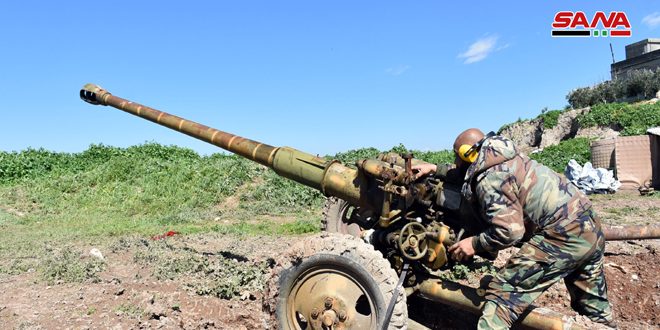 في إطار ردها على خروقات الإرهابيين لاتفاق منطقة خفض التصعيد دمرت وحدات من الجيش العربي السوري العاملة في حماة أوكارا للمجموعات الإرهابية في محيط عدد من قرى وبلدات سهل الغاب وريف المحافظة الشمالي.