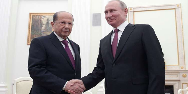 جدد الرئيسان الروسي فلاديمير بوتين واللبناني ميشال عون دعم بلديهما لجهود سورية في محاربة الإرهاب وشددا على عدم وجود بديل عن الحل السياسي للأزمة فيها.