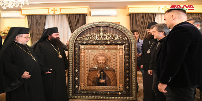 وعقب تسلمه إحدى الأيقونات لفت الوكيل البطريركي لبطريركية أنطاكية وسائر المشرق للروم الأرثوذكس المطران أفرام معلولي إلى أن زيارة الوفد والهدية المباركة التي قدمها دليل محبة الروس لسورية وشعبها.