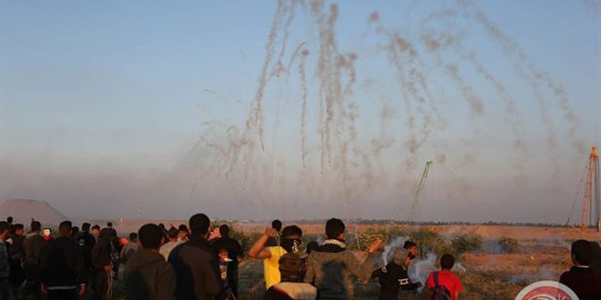 ونقلت وكالة وفا عن مصادر فلسطينية قولها إن قوات الاحتلال أطلقت الرصاص الحي وقنابل الغاز السام على الفلسطينيين المشاركين فى مسيرات العودة وكسر الحصار شرق جباليا شمال القطاع ما أدى لإصابة شاب فلسطيني بجروح والعشرات بحالات اختناق نقلوا على إثرها إلى مستشفى شمال بيت لاهيا.