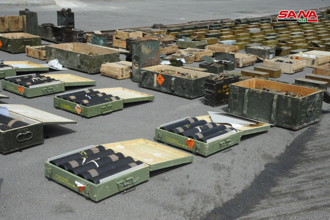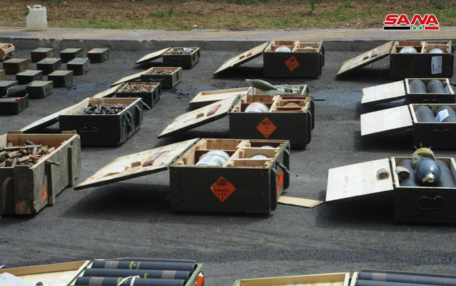 عثرت الجهات المختصة خلال استكمال أعمال تأمين المناطق التي طهرها الجيش العربي السوري من الإرهاب في المنطقة الجنوبية على كميات كبيرة من الأسلحة والذخائر بينها صواريخ أمريكية واسرائيلية الصنع تعكس حجم الدعم الذي تقدمه الدول الراعية للتنظيمات الإرهابية.