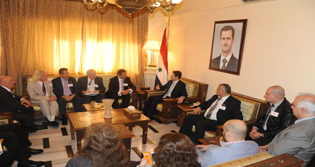 بحث وزير السياحة بشر يازجي مع وفد هيئة الدفاع عن سورية بالسويد سبل تفعيل دور الجاليات العربية السورية بالخارج في نقل الصورة الصحيحة عن الأوضاع في سورية وإظهار وجهها الحضاري.