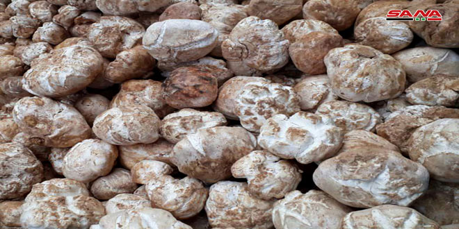أبو محمد فرهود “خبير بالكمأة” تحدث لمراسل سانا عن رحلة البحث عن “فاكهة الصحراء” بين ثنايا جبل جيرود ووديانه لافتاً إلى أنه قبل سنوات الحرب اعتاد الذهاب إلى الصحراء لمسافات طويلة بحثاً عن “بنت الرعد” وهو الاسم الذي يطلق على الكمأة في المنطقة.