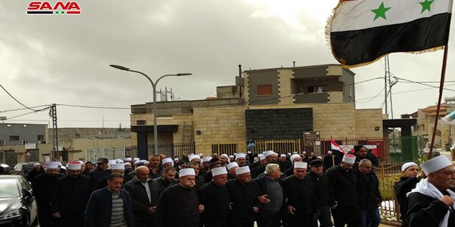 وجدد المشاركون من قرى مجدل شمس وبقعاثا ومسعدة وعين قنية في الجولان المحتل تمسكهم بهويتهم العربية السورية وانتمائهم لوطنهم سورية ومواصلتهم الصمود وتشبثهم بأرضهم ومنازلهم التي تحاول سلطات الاحتلال الإسرائيلي مصادرتها وتهجيرهم منها بالقوة.