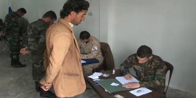 في إطار تعزيز المصالحات المحلية وتوسيع نطاقها تمت اليوم تسوية أوضاع العشرات من الشباب المتخلفين عن خدمة العلم الإلزامية والاحتياطية في محافظة دير الزور.