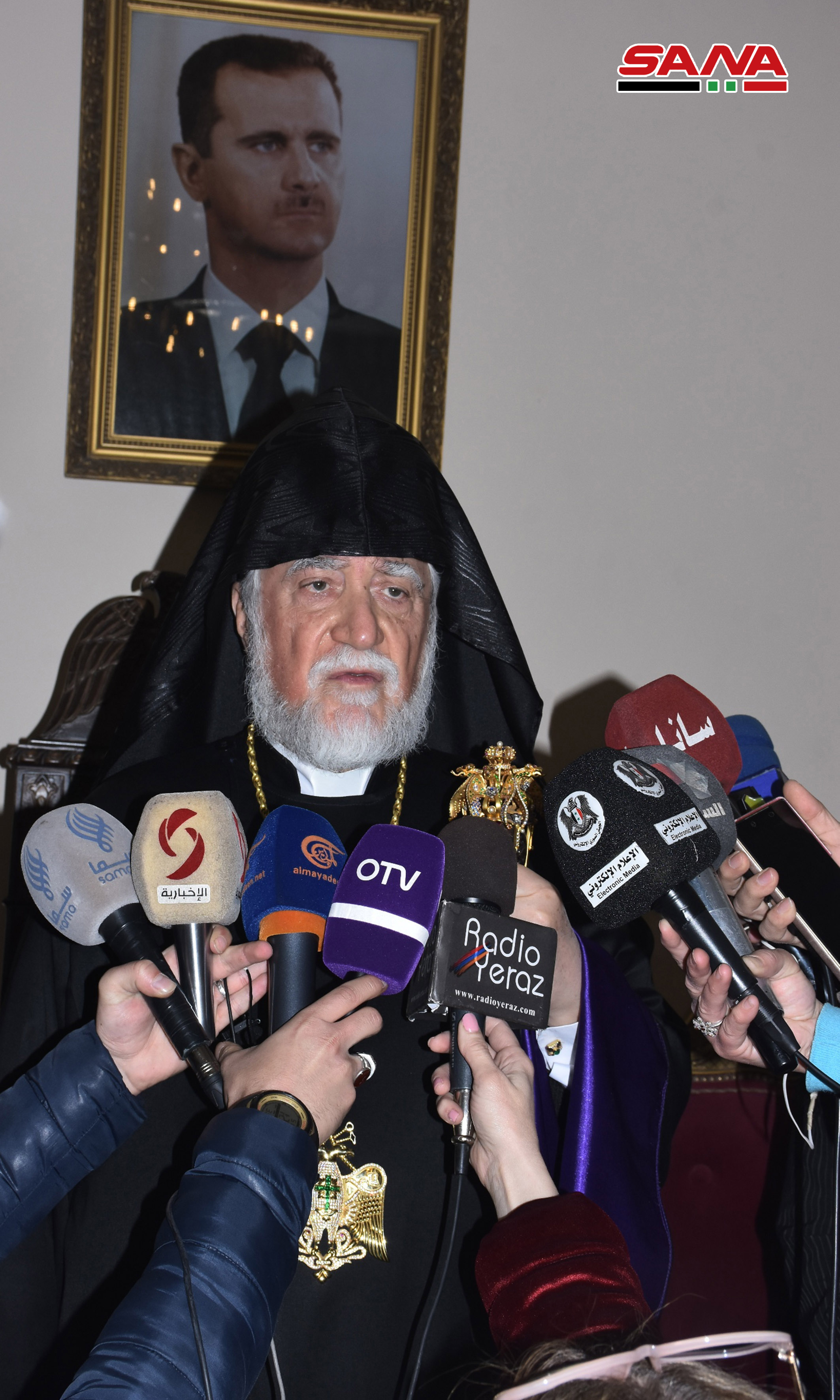 وقال الكاثوليكوس كيشيشيان إن سورية “ستبقى أرض المحبة والإخاء والعيش المشترك واليوم نحن نعمل معا ونتشارك لإعادة إعمار سورية وتحقيق الازدهار لها من جديد وبهذه المناسبة نرفع أسمى ايات الشكر والعرفان للسيد الرئيس بشار الأسد الذي كان له الفضل الأكبر في إعادة إحياء هذه الكاتدرائية وإعمارها”.