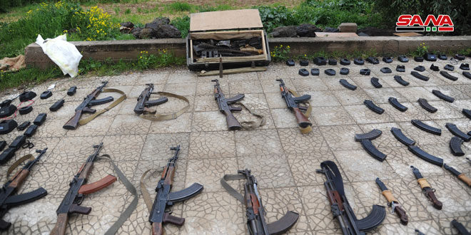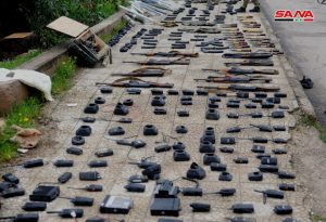 ومنذ تطهيرها من الإرهاب بفضل بطولات وتضحيات الجيش العربي السوري تعمل الجهات المختصة بالتعاون مع وحدات الجيش على تأمين المناطق المحررة من خلال تمشيطها حيث عثرت على كميات كبيرة من الأسلحة والذخيرة بعضها إسرائيلية وأمريكية المنشأ وأدوية وسيارات شحن كبيرة وسيارات إسعاف غربية الصنع ما يعكس حجم الدعم اللوجستي والتسليحي للتنظيمات الارهابية من الدول الداعمة والراعية لإرهابها.