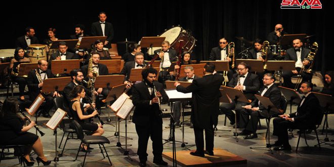 عزف منفرد ومتناغم في الأمسية الموسيقية التي أحيتها مساء اليوم أوركسترا النفخيات السورية بقيادة الموسيقي إيهاب القطيش بدار الأسد للثقافة والفنون.