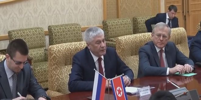 وعقدت أمس محادثات في بيونغ يانغ بين وزيري الداخلية الروسي والكوري الديمقراطي ناقشا خلالها قضايا التعاون بين البلدين وخصوصا في مجال تطبيق القوانين.