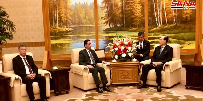 حضر اللقاء رئيس اتحاد الشباب الكوري باك تشول مين وعضو قيادة منظمة طلائع البعث وضاح سواس وسفير سورية في بيونغ يانغ تمام سليمان.