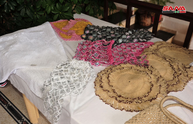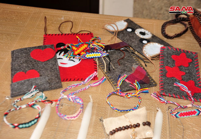 المعرض هو نتاج ورشة عمل سبع سيدات تضمن أعمالا على الخشب وتطريزا وحياكة سنارة وشموعا وألعابا وتحفا مشغولة بأدوات بسيطة متوافرة لدى الجميع حسب ليليان بلان إحدى المشرفات عليه التي بينت لمراسلة سانا أن المعرض يهدف إلى تشجيع النساء وتقديم دعم معنوي ونفسي وإتاحة فرص العمل لهن.
