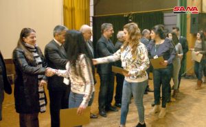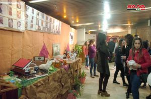 وشملت الفعاليات التي يقيمها فرعا جامعة دمشق والاتحاد الوطني للطلبة في السويداء عرضا مسرحيا للأطفال بعنوان “خيال” تأليف وإخراج أكرم غزلان يتناول صورا من واقع الحرب الإرهابية على بلدنا وقيم التشبث بالأرض والانتماء إلى جانب معرض لأعمال طلبة معهد التقانة الزراعي بالسويداء بعنوان “الابتكارات الريفية ومبادرة الأعمال للمساهمة في إعادة الإعمار” فضلا عن تكريم فريق مبادرة دعم الحياة “سنبقى”.