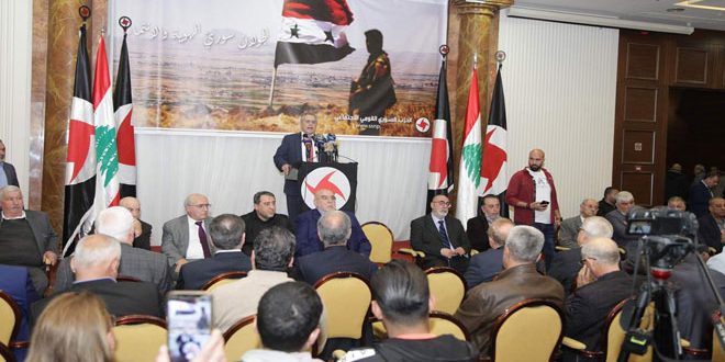 من جهته اعتبر أمين الهيئة القيادية في حركة الناصريين المستقلين /المرابطون/ العميد مصطفى حمدان أن انتصار الجيش العربي السوري على الإرهابيين سيكون بوابة العبور إلى تحرير فلسطين عبر الجولان.
