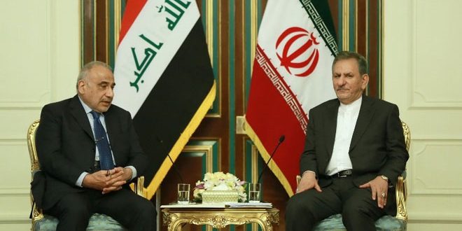 شدد النائب الأول للرئيس الإيراني إسحاق جهانغيري ورئيس الوزراء العراقي عادل عبد المهدي على ضرورة عدم السماح للعقوبات الاقتصادية التي تفرض من قبل الدول الغربية بإعاقة العلاقات بين البلدين.