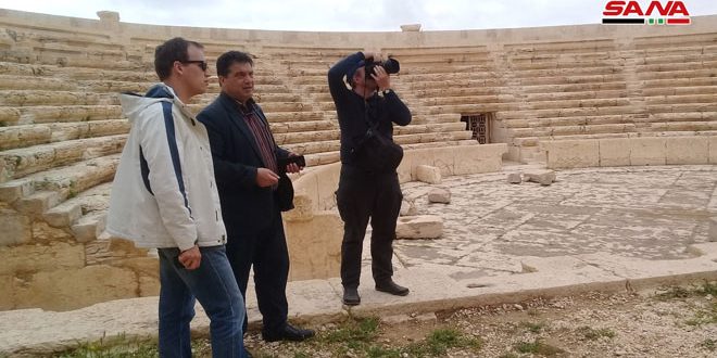 واطلعت المجموعة السياحية الألمانية على أبرز معالم الحضارة الثقافية في مدينة تدمر ووثقوا بالصور الدمار الذي خلفه تنظيم “داعش” الإرهابي بحق الثقافة والتراث والتاريخ الإنساني في هذه المدينة الاثرية.