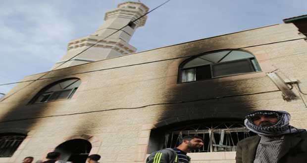 أحرق مستوطنون متطرفون فجر اليوم مسجدا في قرية المغير قرب رام الله بالضفة الغربية.